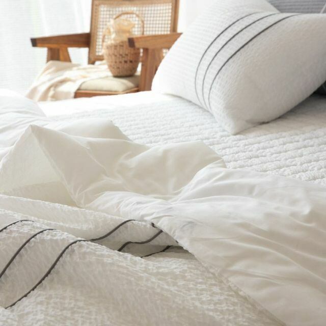 写真に写っているキルティングベッドパッド、枕カバーは別売りです。