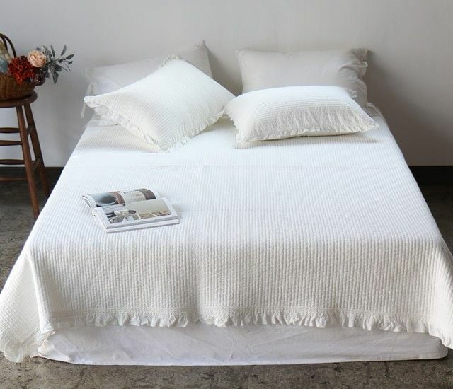Fablic interior イブル】さらさらウォッシュコットンのフリルキルティング枕カバー(40×60、50×70)