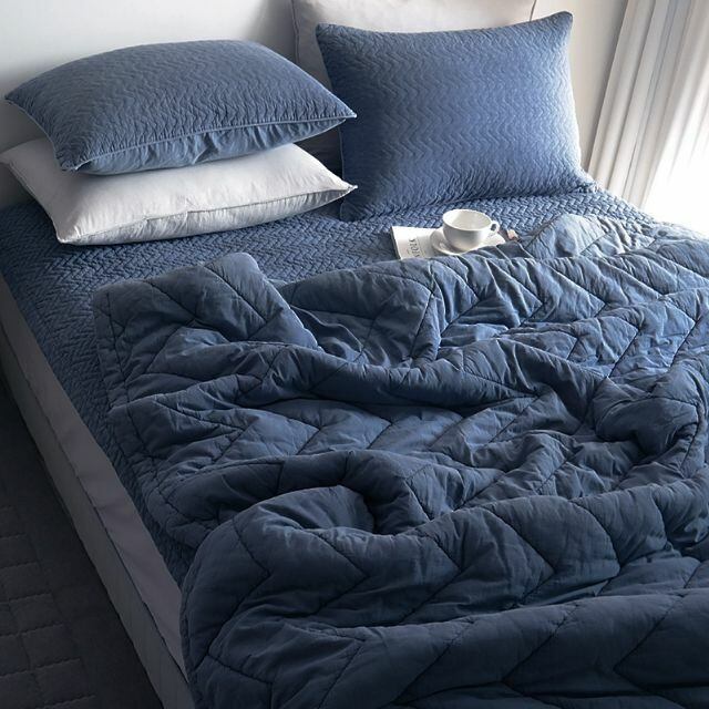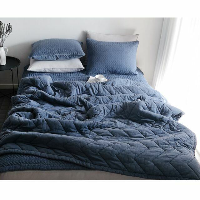 【Fablic】(ダブル200×230)モダンヘリンボーンウォッシュ ピグメントキルティングイブル